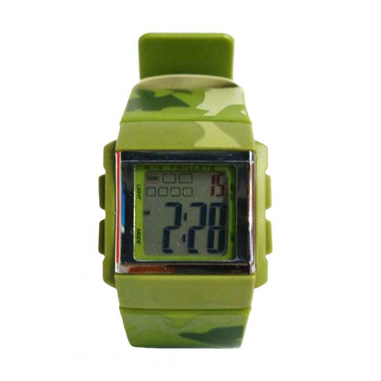 This is a digital watch boasting a cool and charming design. It is crafted in army green with camouflage patterns for added uniqueness. This refined watch is a great addition to your watch collection.