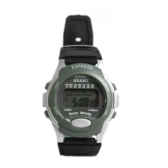 This is a digital watch featuring a round case in white with gray bezel and a pair of black bands. It comes with a quality LCD display to show precise and accurate data of the time. This high-precision watch is an ideal choice for everyday wear.