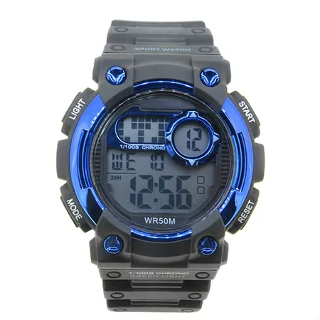 This digital wristwatch boasts a rugged plastic case highlighting a round digital LCD display. It is meticulously engineered with an auto-calendar, a stopwatch and a multi-function alarm. This digital wristwatch combines a perfect blend of functionality and style to help you stay on track.