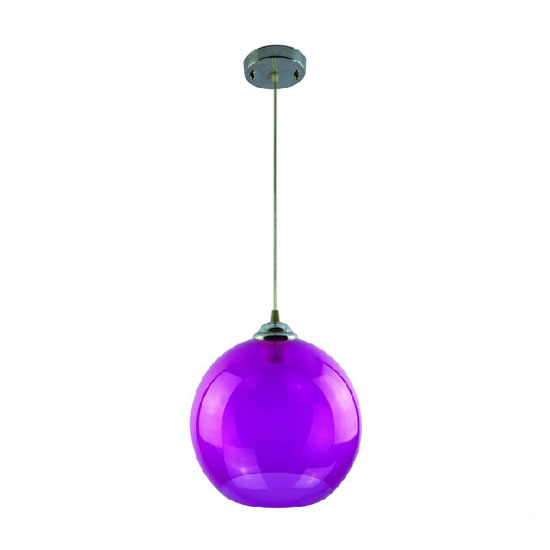 This is an eye-catching pendant lamp suitable for use in dining rooms. It features a PMMA lampshade in bright purple. This attractive lamp goes well with any modern room design.