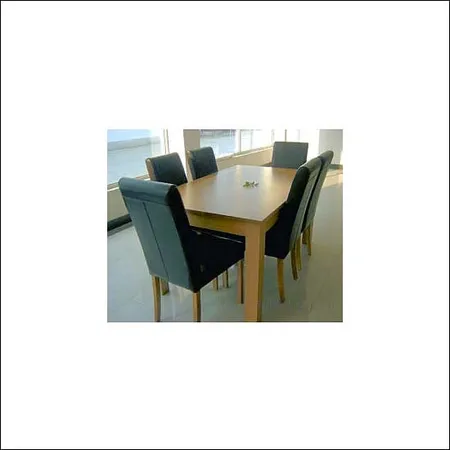- It comprises an oak-veneered table top with solid wood legs & 6 pcs PU upholstered high back chair.