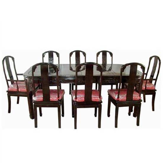 Showcased is a classical dining table set that flaunts an exquisite aura from its grand design. This dining table set comes with six chairs and 2 armchairs. This fine dining table set is an excellent addition to luxury households.
