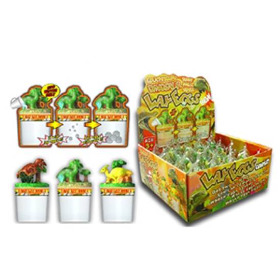 This is a novelty item features the fun of making and seeing the dinosaur lays eggs. It basically works in the way that after the container is filled with water, there will gradually be 'eggs' and they will grow bigger and bigger until they reach their full size.