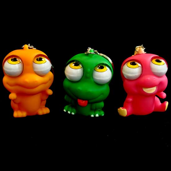 Shown here is a keychain that features a cute dinosaur. The eyeballs of the dinosaur can roll, making them lovely decorations for your handbag or backpacks. The body comes with sharp colors which are eye-catching.