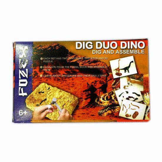 This game set features two 3D dinosaur skeleton puzzles. It comes with a fossil block for kids to excavate and assemble the skeletons. This set of fun and exciting puzzles allows kids to learn about dinosaurs.