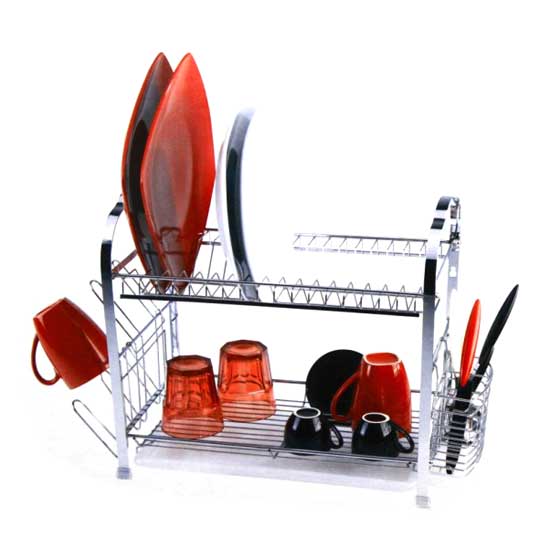 Featured is a dish rack made of chrome-plated steel for added durability. The dish rack comes with a cup rack, a cutlery holder and a plastic tray to keep the dripped water. This dish rack offers you a convenient way to tackle the kitchen storage problem.