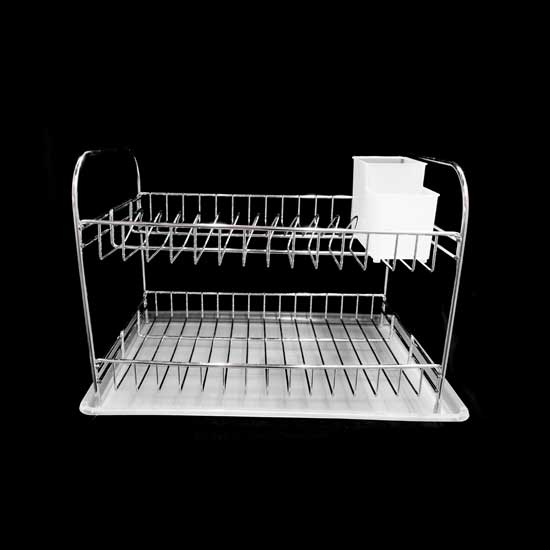 This rack dries your dishes and keeps them organized. The bottom plate holds the water dripped away from dishes. The well-constructed rack can be used for a long time.
