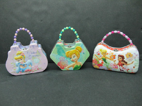 Diamond shape, classic handle and scoop handbag tins with beaded handle.