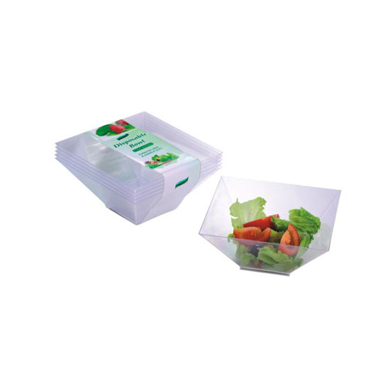 Serve food with these disposable bowls. Each set comes with 5 disposable bowls. The square shape food bowl comes with a semi-transparent design. Suitable for holding salads or snacks, the disposable bowls are great for outdoor parties and restaurants.