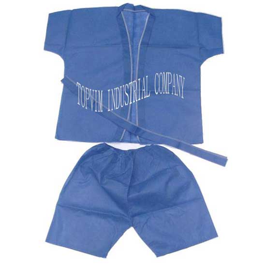 Showcased is a medical suit with a disposable design. It comes with a waist belt for a custom fit. This disposable suit is an ideal choice for medical professionals.