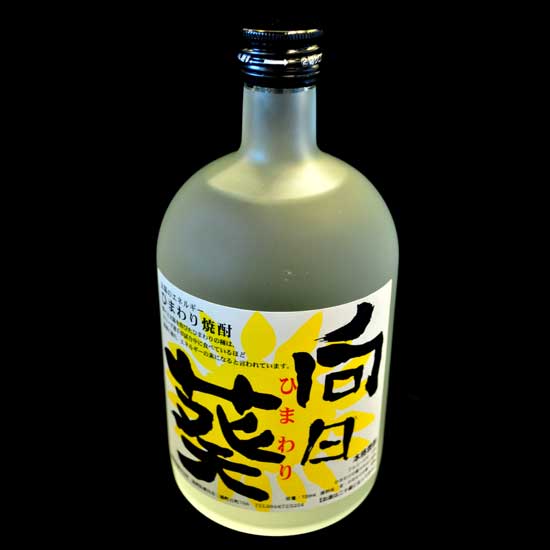 Shown here is a bottle of distilled sake that is made from sunflower seeds, almonds and rice. The floral aroma and flavor is refreshing and is perfect to serve in the hot summer. This distilled sake enhances the taste of traditional Japanese snacks.