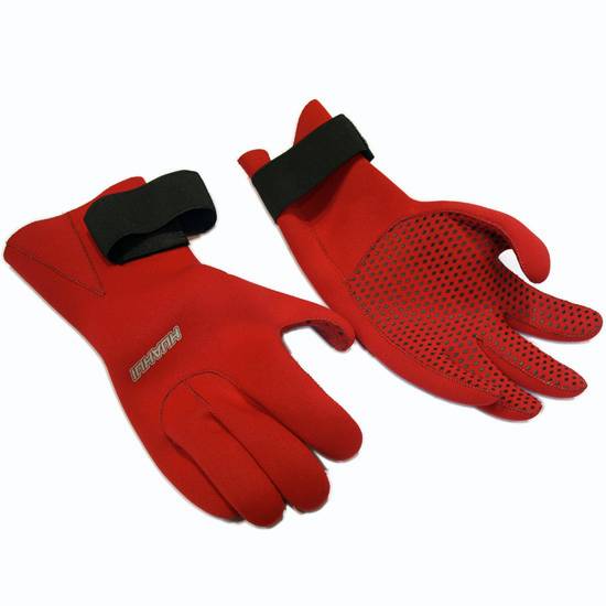 These red diving gloves have a vibrant appearance. The trimming of the gloves is very slim, making them fit your hands perfectly and comfortably. This pair of gloves can protect your hands when you are underwater.