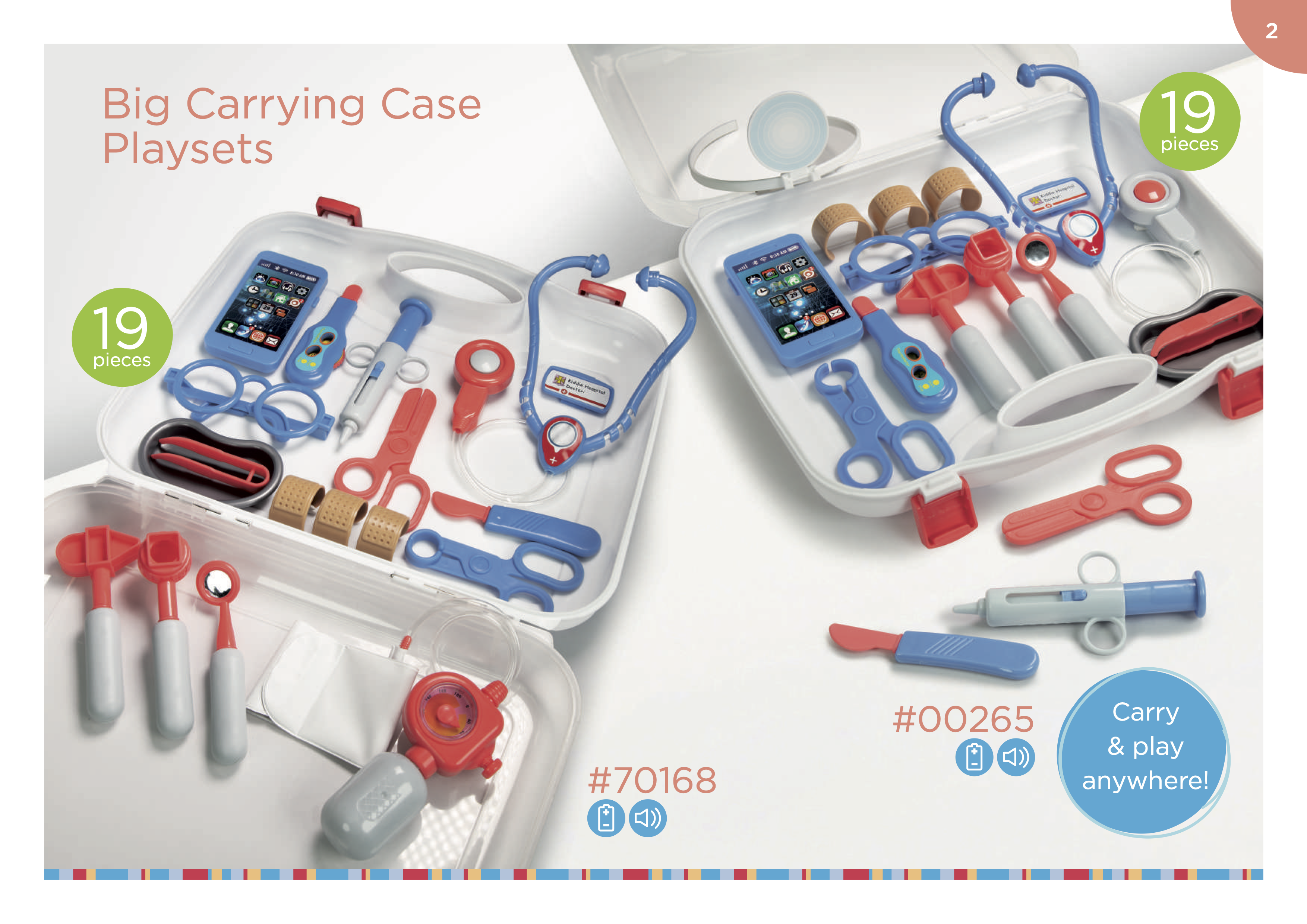 Doctor Kit with carrying case. Kids can pretend to be a doctor or patient to play with this kit. Using the B/O stethoscope to hear the patient. All the tools can be store in the clear carry case.