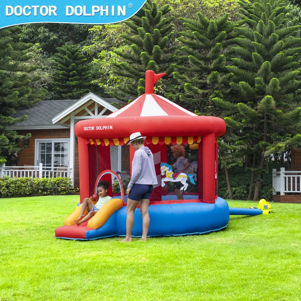 DoctorDolphin Brand Indoor/outdoor Bounce House for Kids, Water Park, Inflatable Castle, Jumping Castle with Air Blower, Bounce House, Bouncer, Water Slide, Bouncy Castle, Climbing, Water Guns,
