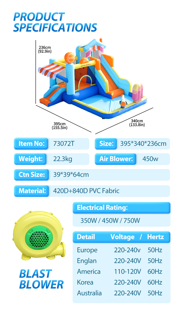 DoctorDolphin Brand Inflatable Water Park with Air Blower,Bouncy Castle for Kids,Bounce House,Jumping Castle,Bouncer,Water Guns, Climing,