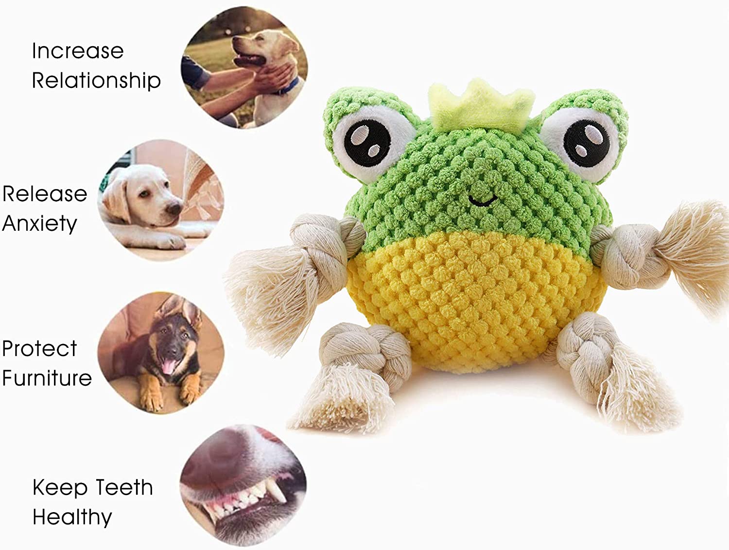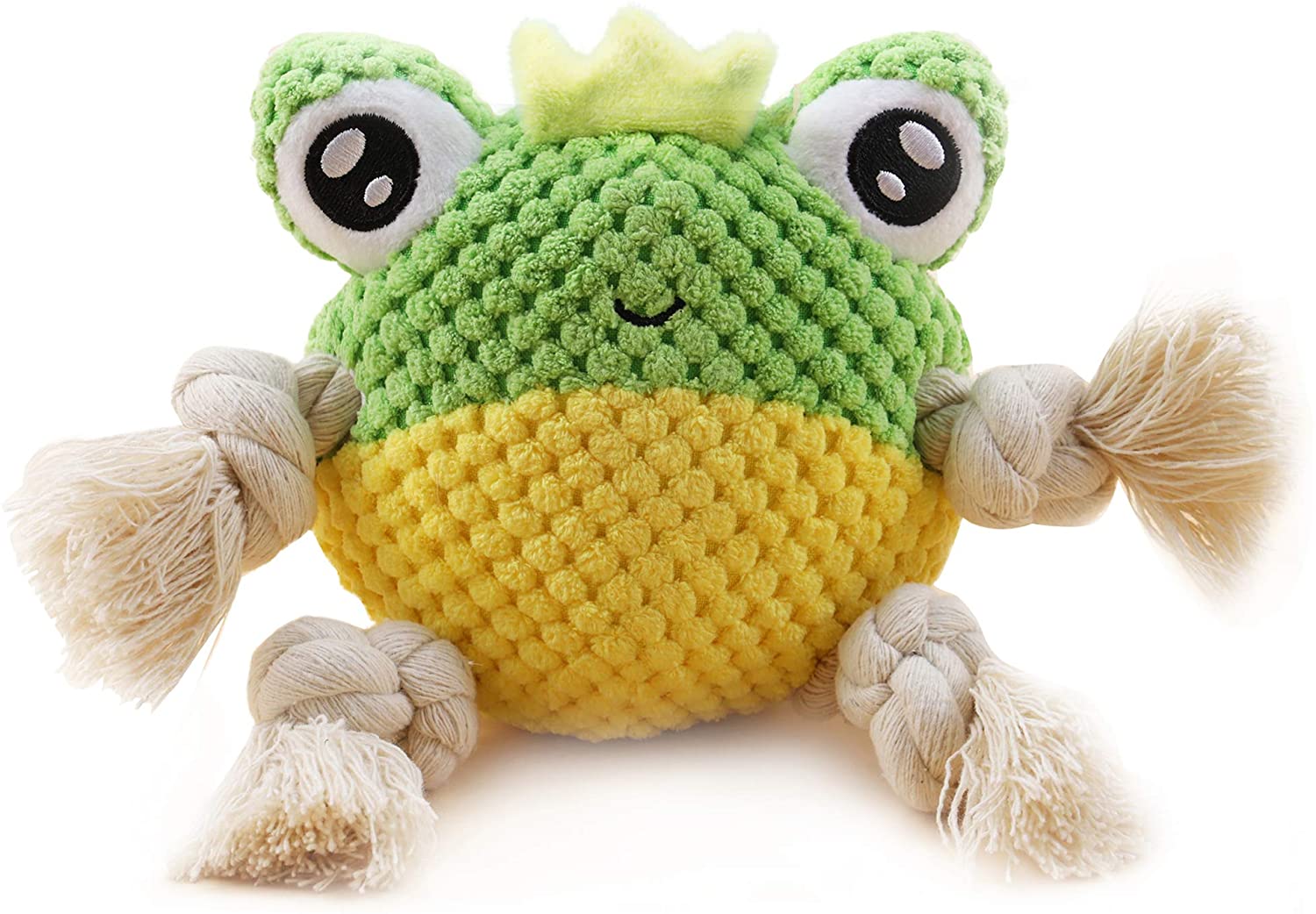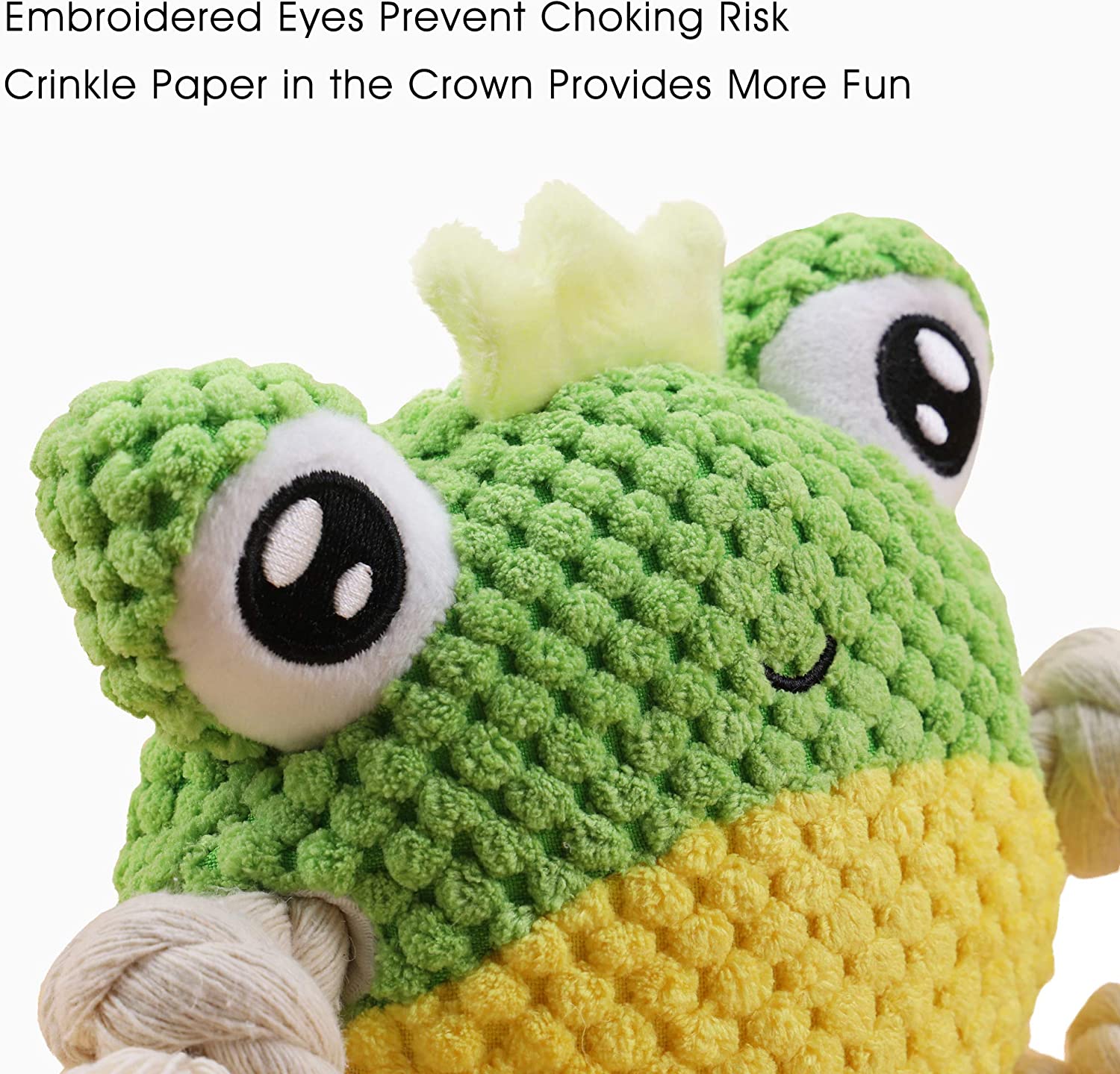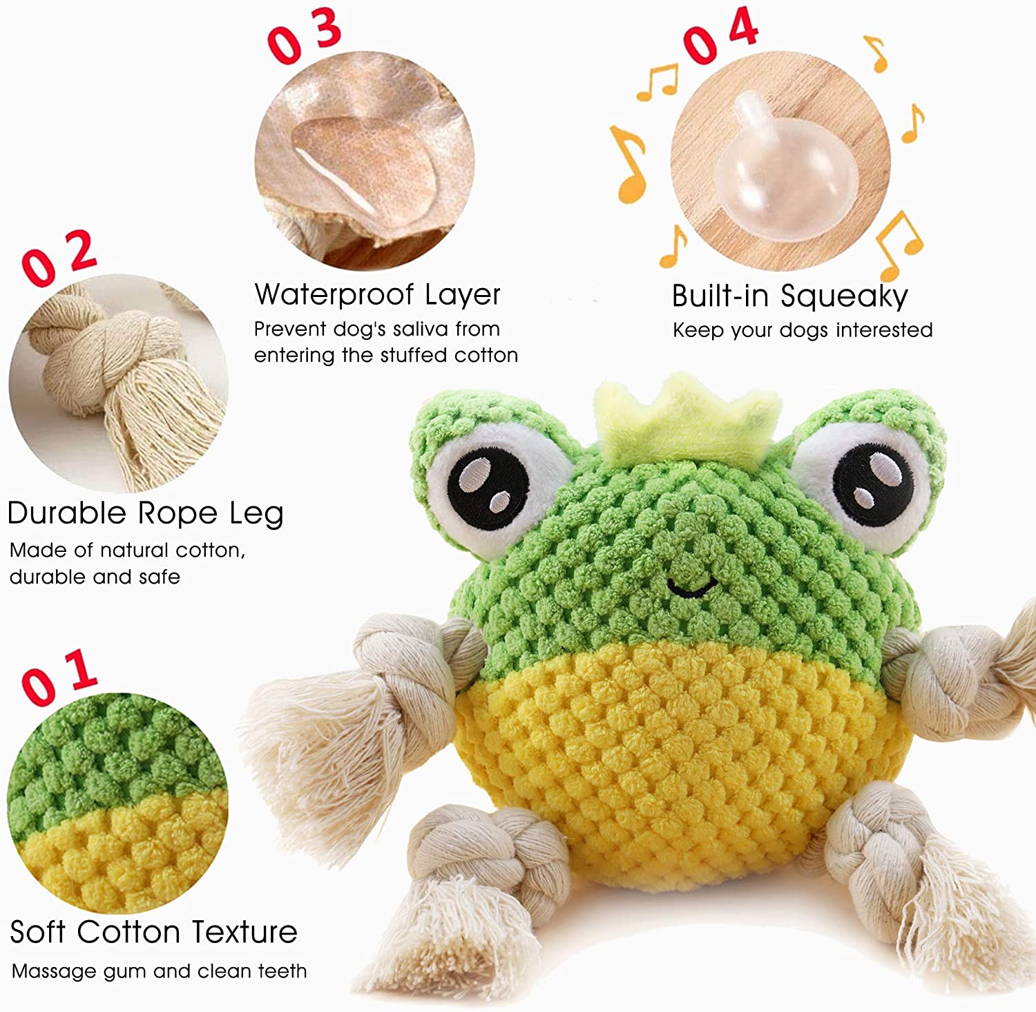 Dog Plush Toys Dog Squeaky Toys with Crinkle Paper Partial Stuffed Chew Toys for Puppy and Medium Dogs(Frog)