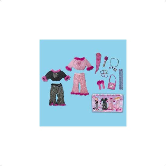 Lots of items such as trousers, slippers, handbags and necklace are included in this toys set