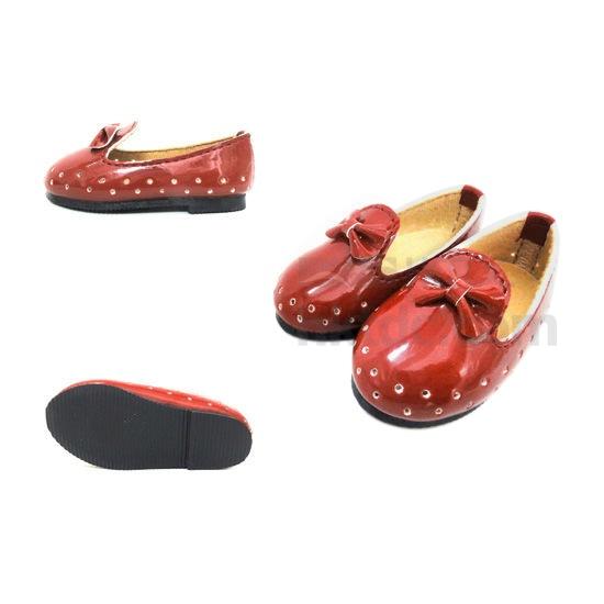 Upgrade the dressing of your favorite doll with these exquisite shoes. Mimicking a real pair of loafers with the attention to details, this pair features textured outsoles and comes completed with smoothly shaped round toes and bow accents in striking red PU patent leather. Slip them on your doll’s feet for a quick change.
