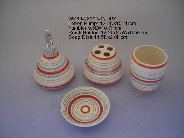 - Dolomite stripe pattern bathroom set, include lotion pump, tumbler, brush holder, soap dish.