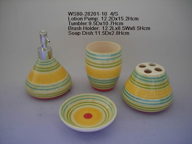 • Dolomite stripe pattern bathroom set, include lotion pump, tumbler, brush holder, soap dish.