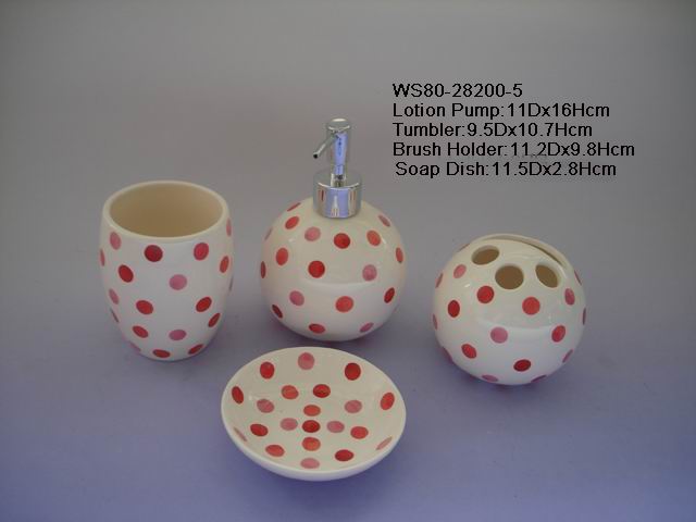 - Dolomite round dot bathroom set, include lotion pump, tumbler, brush holder, soap dish.