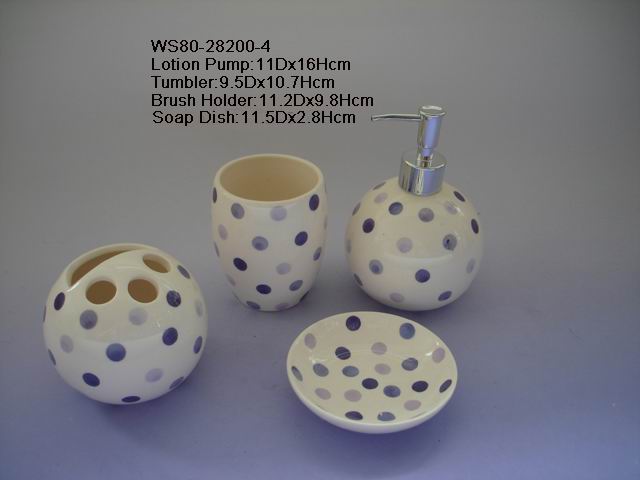 - Dolomite round dot bathroom set, include lotion pump, tumbler, brush holder, soap dish.
