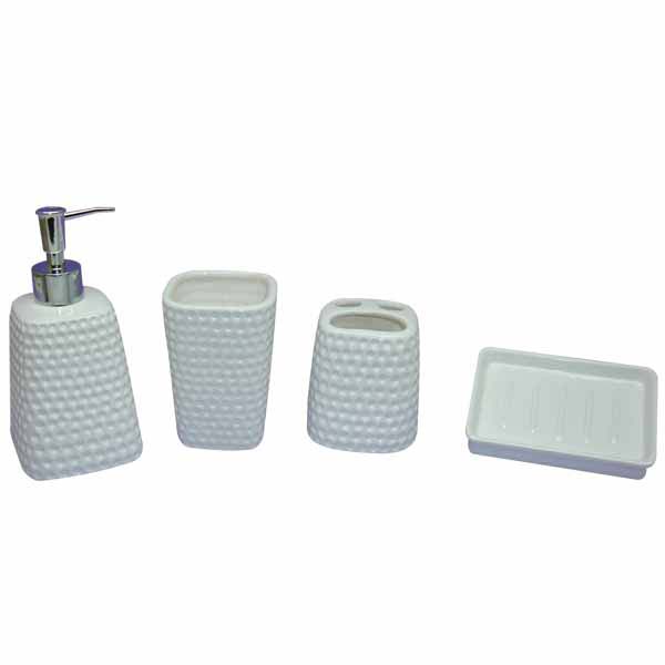 • Set of 4 dolomite bathroom set, include lotion pump, tumbler, brush holder, soap dish.