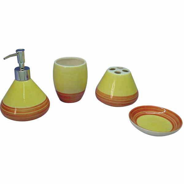 - Set of 4 dolomite bathroom set, include lotion pump, tumbler, brush holder, soap dish.