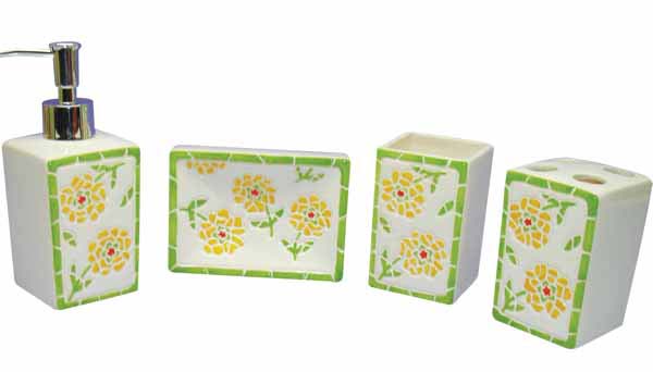 - Dolomite flower pattern bathroom set, include lotion pump, tumbler, brush holder, soap dish.