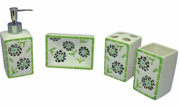 - Dolomite flower pattern bathroom set, include lotion pump, tumbler, brush holder, soap dish.