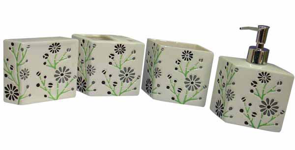 • Set of 4 dolomite bathroom set, include lotion pump, tumbler, brush holder, soap dish.