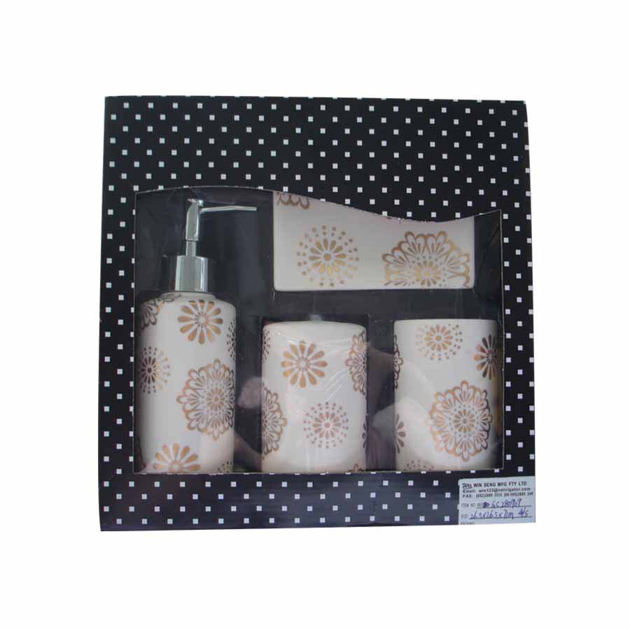 • Set of 4 dolomite bathroom set, include lotion pump, tumbler, brush holder, soap dish.