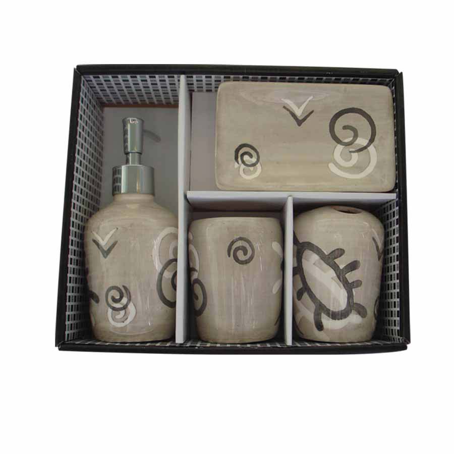 • Set of 4 dolomite bathroom set, include lotion pump, tumbler, brush holder, soap dish.