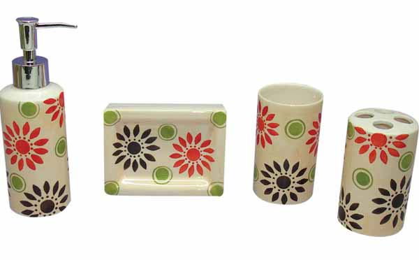 - Dolomite flower pattern bathroom set, include lotion pump, tumbler, brush holder, soap dish.