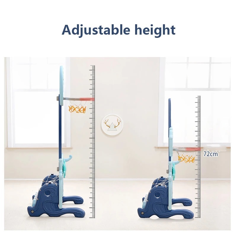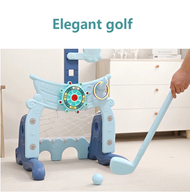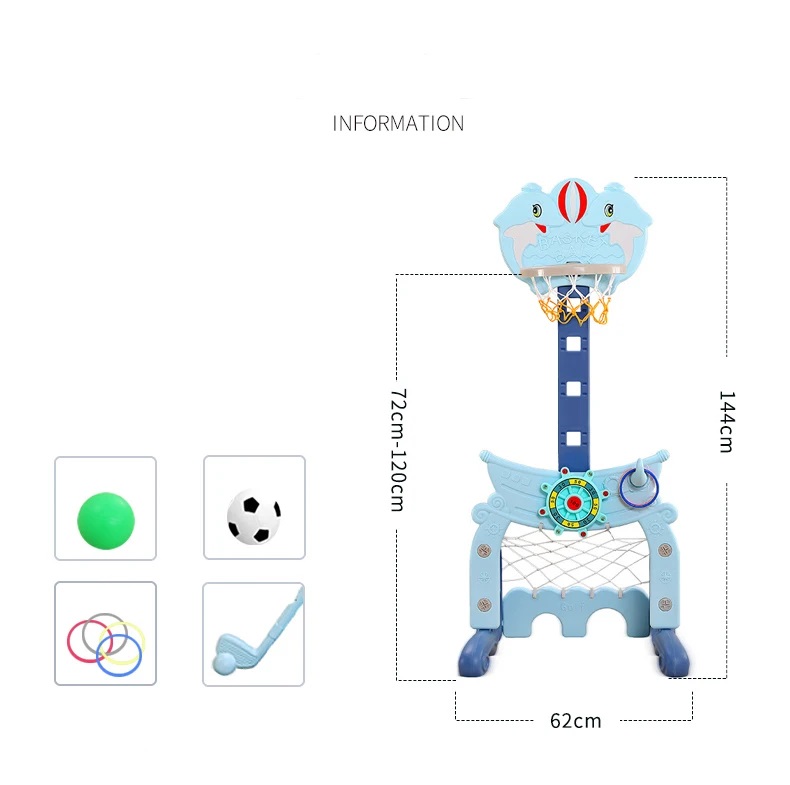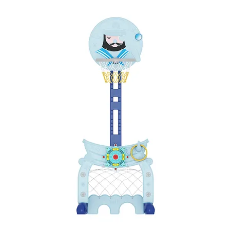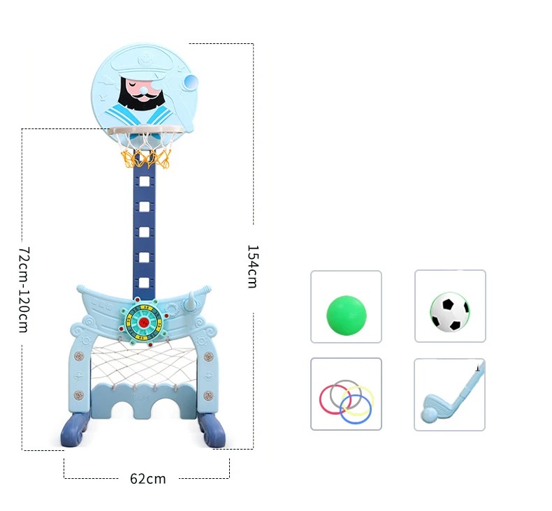 Dolphin/Captain theme Functional children plastic indoor adjustable height basketaball hoop stand with football and golf