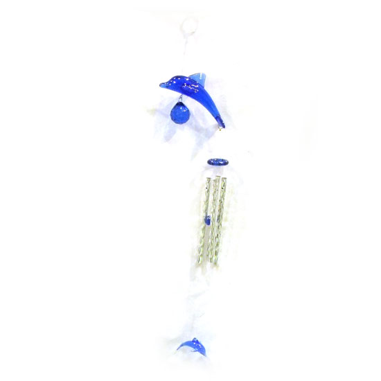 This decorative wind chime is inspired by the natural charm of ocean. Blue, crystal-like dolphins hop in the wind elegantly. This fancy wind chime delights user with crisp, lovely sound too.