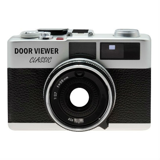 Displayed here is a door eye sticker in classic camera style. It offers good adhesive power and is easy to stick on doors. You can use this sticker to make your door eye look like the lens of the camera.