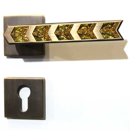 As shown is a door handle that is made of sturdy zinc alloy for durability. The long and narrow design of this piece can perfectly fit your hands. Moreover, the surface of this piece features arrow-shaped crystal embellishments that are elegant and eye-catching.
