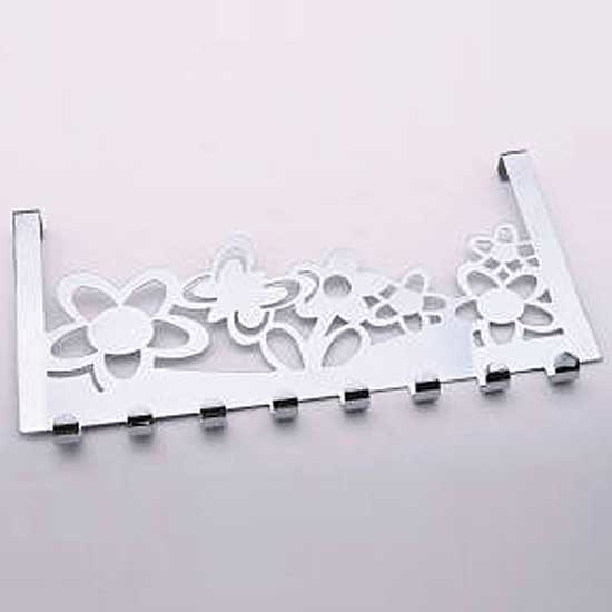 Here is a household hook for hanging behind the door. The metal hook comes with 8 hooks for hanging towels and clothes. The hook is carved with beautiful flower patterns to add extra fun to the design.
