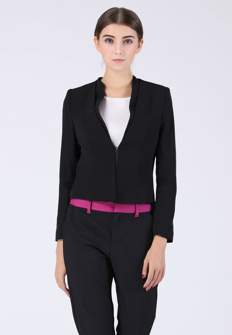 This false double collar cropped blazer offers a sleek and professional look with concealed hook fastening. It is meticulously tailored with slimming silhouette.