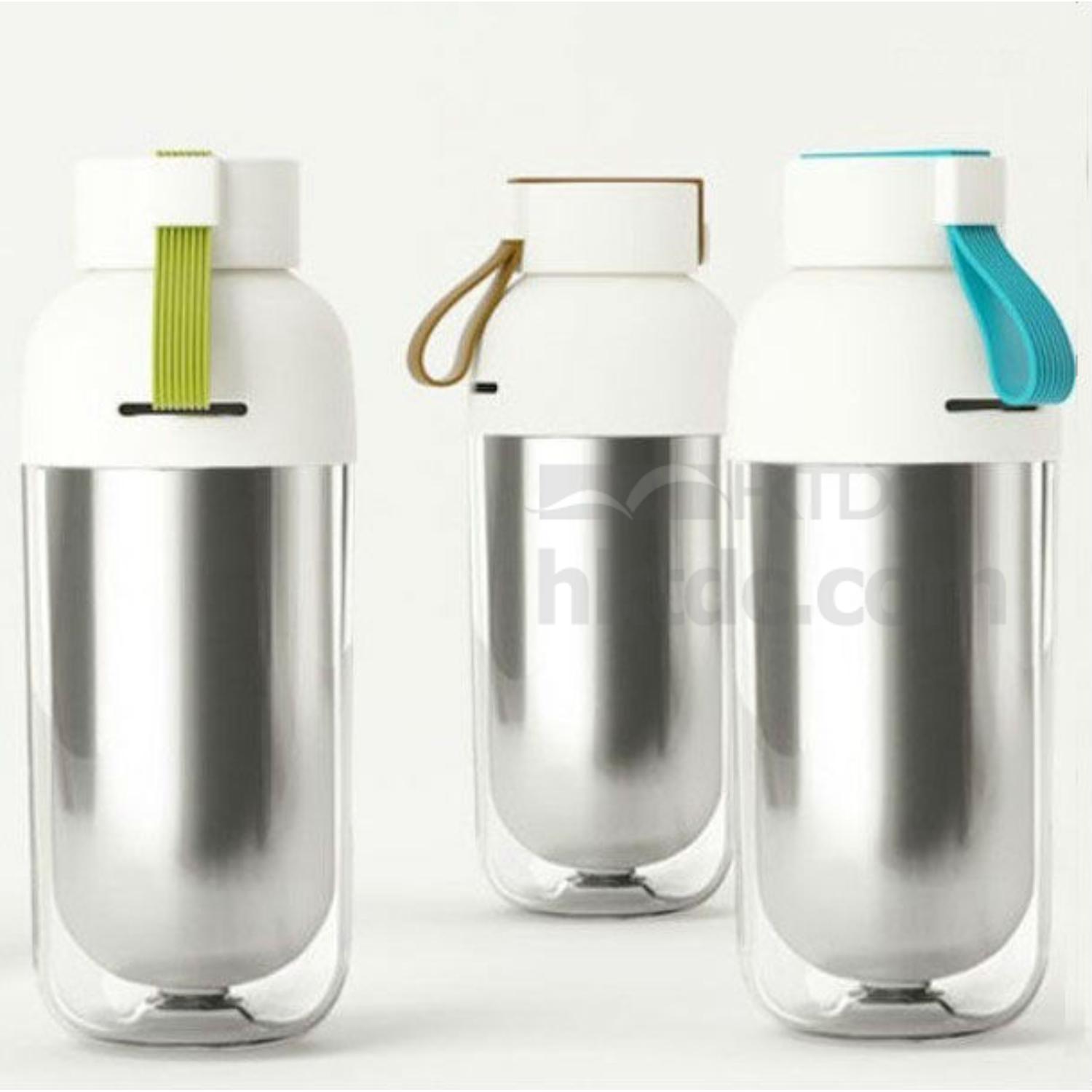 Stainless steel inner body with double walled construction retains hot and cold for longer periods.