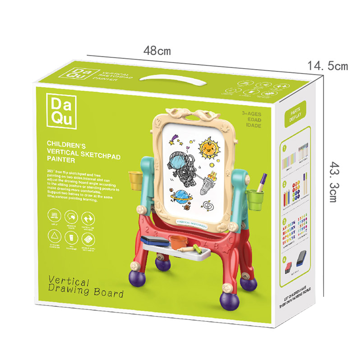 Newest Double-Sided Magnetic 360 Degree Rotation Vertical Drawing Board for Kids