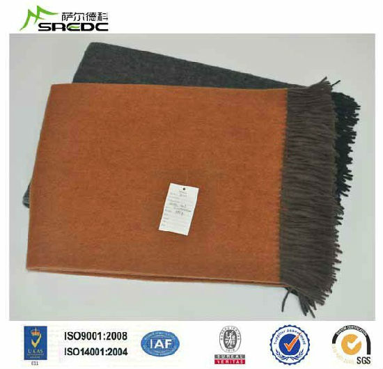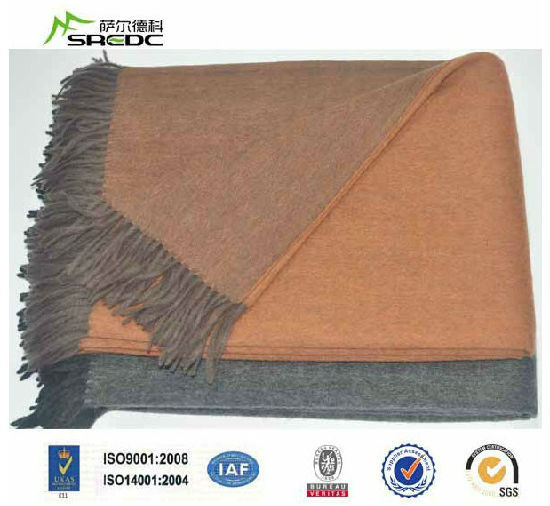 It's double sided throw with two colors. It is made of pure wool for maximum warmth. This distinctive woven blanket shows your noble tastes.