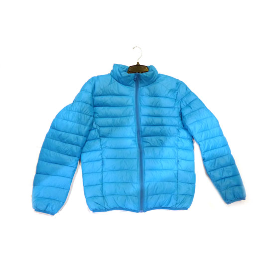 This down jacket is designed in light blue for an eye-catching look. It is finely made to ensure wearing comfort and warmth. This down jacket comes with delicate striped patterns for a touch of style.