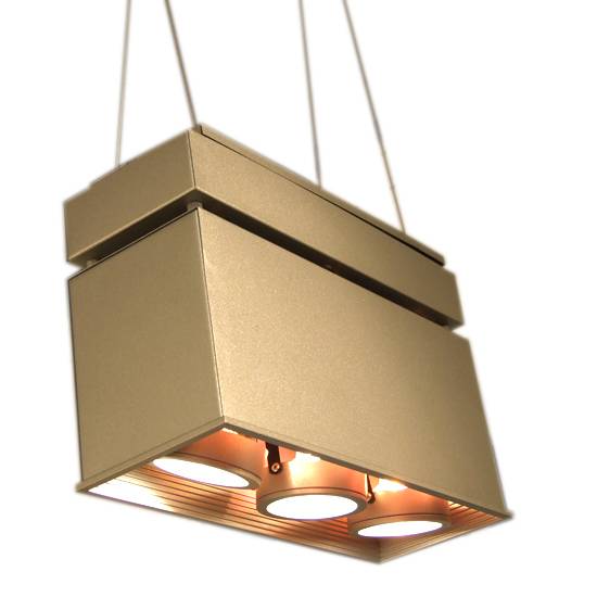 The downlight as shown is to be hanged on ceilings. Each lamp includes 3 light sources. The reflective lining offers enhanced illumination.