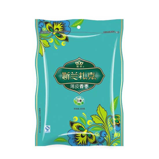 Displayed is a pack of dried date that is made from carefully selected fresh dates. Featuring a thin skin, this date is sweet with chewy flesh. This delicious dried date also has multiple health benefits, including relieving cough.