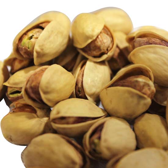 The dried pistachios here belong to Kalleh Ghouchi, a variety of pistachio which features jumbo kernels. The shells are half opened for easy use. The aromatic pistachios are delicious and beneficial to the health.