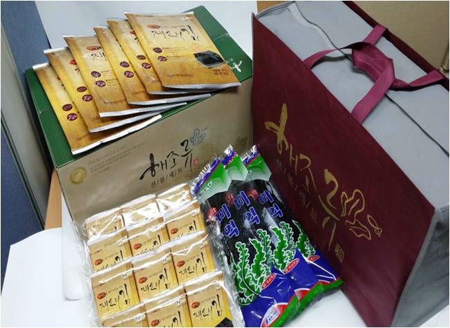 Content composition - One bag of traditional laver that added anchovy calcium [20g] x 10 bags - One bag of traditional laver that added anchovy calcium [5g] x 24 bags Dried brown seaweed [50g] x 5 bags Expiry date: 12 months from the date of manufacture * Primary raw materials: Traditional laver [domestic production] 77%, anchovy calcium powder [domestic production] 5%, corn oil, olive oil, perilla oil, perilla oil, cooked salt * Storage: Keep in a cool and well-ventilated place avoiding direct sunlight and free from humidity. Once keep in a freezing compartment, taste and flavor can be preserved for long.