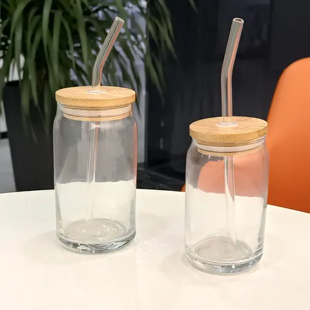 Sublimation Drinking Beer Cup Can Glass Soda Can with bamboo lid