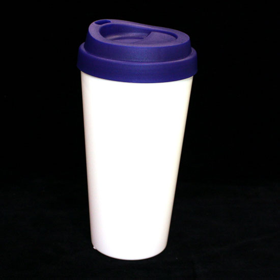 The cup named "I am Not a Paper Cup" comes with an ample capacity. Its white body offers an appealing contrast with the violet lid. The latter also features a small hole to make on-the-go sipping easy.